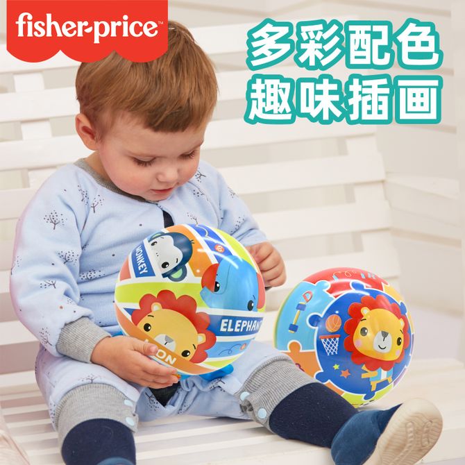 费雪(Fisher-Price)儿童玩具球充气球皮球手抓弹力球宝宝初级训练生日礼物儿童玩具【F6027彩印球15cm套装两个装】