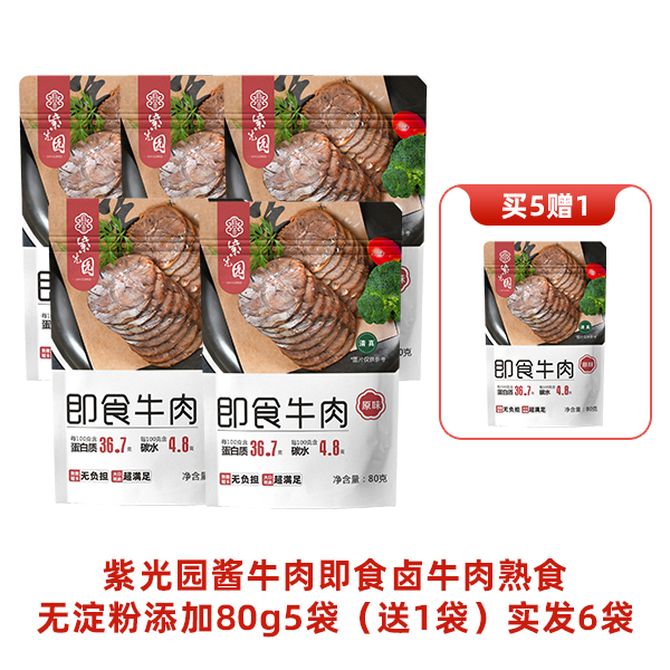 紫光园酱牛肉即食卤牛肉熟食无淀粉添加80g*5袋(送1袋)实发6袋