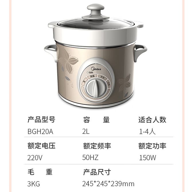 美的(Midea)电炖锅白瓷2L慢炖家用保温机械式文火锅煲家用防溢两档BGH20A 陶瓷内胆,雅致携式,三档调控,2L容量,环绕加热 兑换价格 7000 里程 会员卡别 终身白金卡 白金卡 金卡 银卡 普通卡 儿童卡 商品已下架 1. 请联系卖家咨询 2. 逛逛广西桂福礼供应链管理有限公司选择其他商品 组合销售 产品介绍 产品规格 售后服务 产品咨询 发现好货 小熊/Bear 电炖锅1-2人小炖锅煮粥锅智能预约定时煲汤锅炖汤锅燕窝炖盅 4400 里程 苏泊尔(SUPOR) 电火锅家用不粘煎涮炖煮多功能4L大容量一体式大火力电煮锅不粘煎涮炖煮多功能料理锅 H40YK757 5700 里程 苏泊尔(SUPOR) 电火锅 宿舍小电锅学生寝室一体泡面小火锅 多功能锅涮肉涮菜 1.7L 【 单锅】H17YK489 3000 里程 小熊(Bear)电炖锅电炖盅煮粥神器煲汤锅炖汤锅婴儿煮粥锅熬粥燕窝炖盅DDG-E15K2 4800 里程 利仁(Liven)电炒锅电煮锅电火锅 家用多功能小电锅电炖锅宿舍泡面锅 4.5L容量 DHG-X451 5200 里程