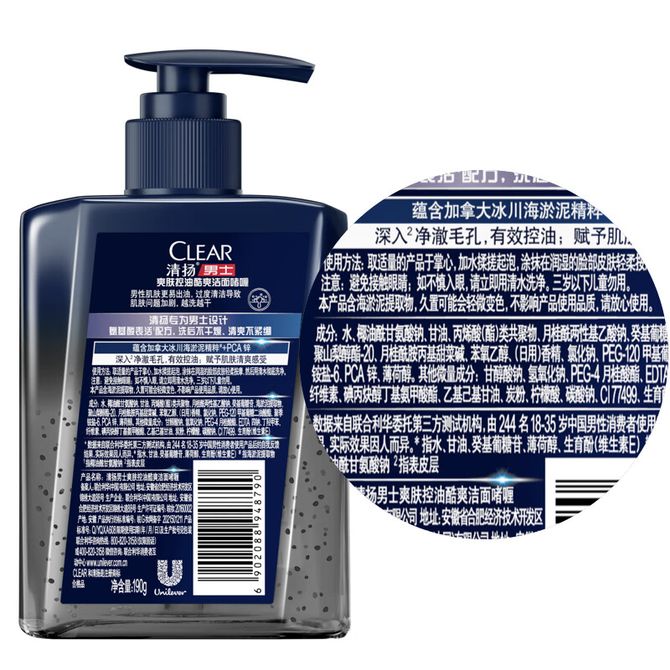 清扬男士洗面奶男士洁面190g爽肤水精华控油清洁型清爽不紧绷氨基酸爽肤持续高效控油男士护肤