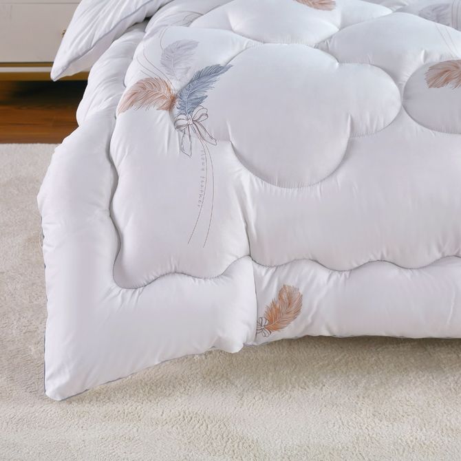 (纤羽亲肤被;规格:200*230cm;重量:2kg)甄选优质好面料,吸湿保暖,不易掉毛缩水;采用优质羽丝棉填充,吸湿导热性好,蓬松柔软;采用全新的绗缝工艺,有效防止固定内芯;填充:羽丝棉(聚酯纤维);面料:亲肤棉(聚酯纤维)