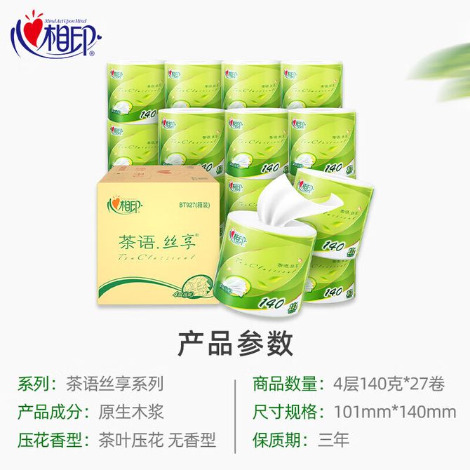 心相印卷纸厕纸手纸卫生纸有芯卷筒纸巾4层140g27卷家用实惠装加量加厚空心卷纸厕纸卷筒卫生纸整箱装