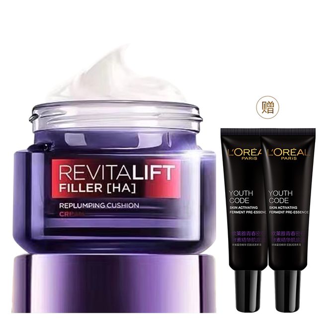 欧莱雅雅零点霜复颜玻尿酸水光充盈导入乳霜50ml+赠:黑精华15ml*2