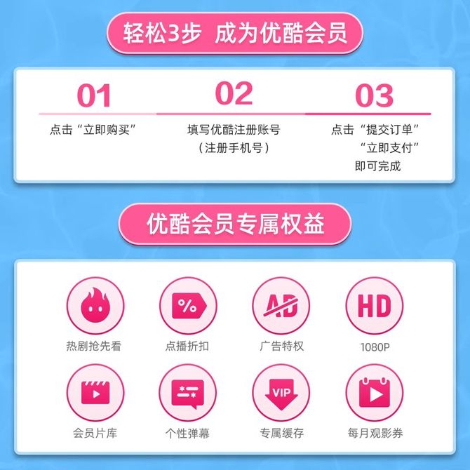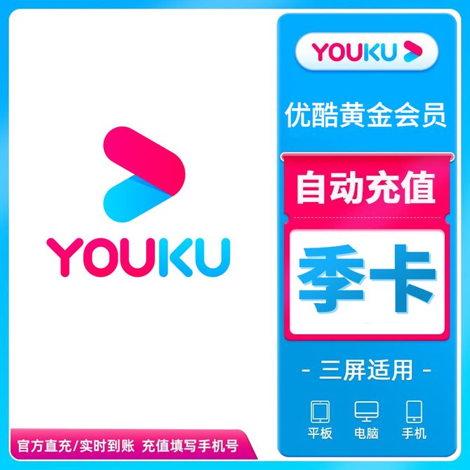 优酷会员3个月youku土豆视频vip会员季卡youku会员季卡直充填手机号