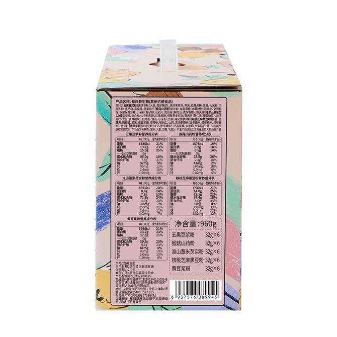 "五黑豆浆粉32g*6猴菇山药粉32g*6淮山薏米芡实粉32g*6核桃芝麻黑豆粉32g*6黄豆浆粉32g*6"
