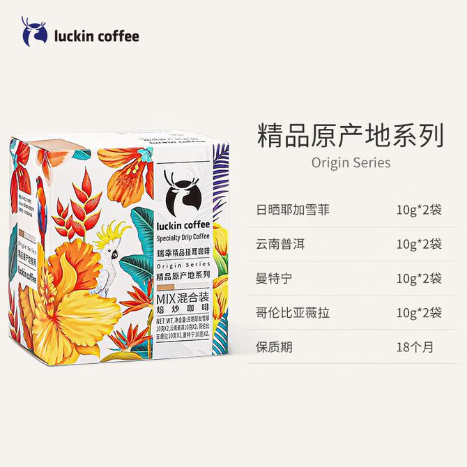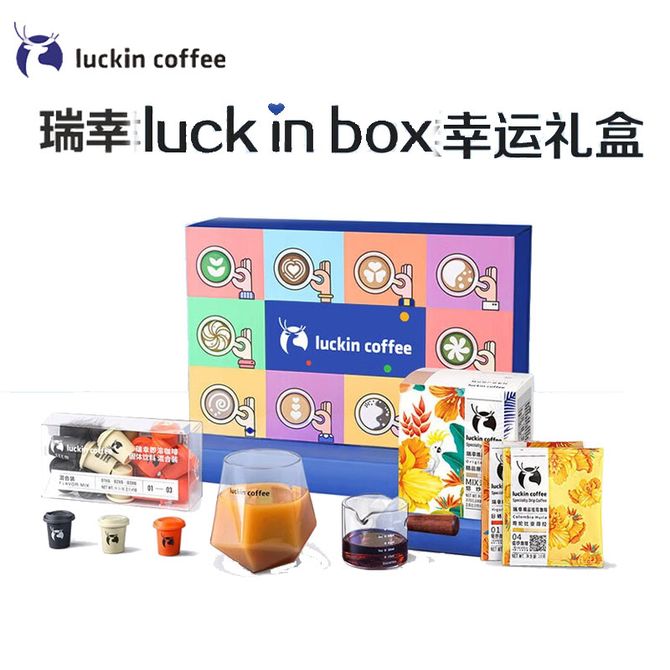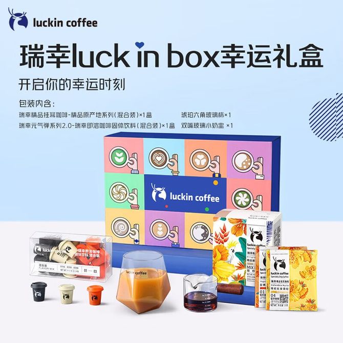 "瑞幸咖啡luckinbox幸运礼盒(挂耳咖啡*1元气弹咖啡*1六角玻璃杯*1小奶盅*1