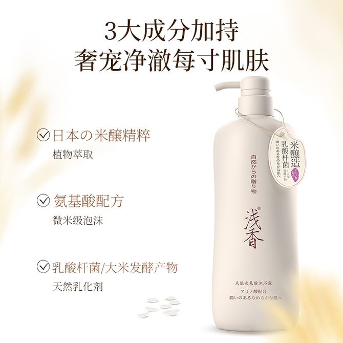 浅香(ASAKA)米酿氨基酸沐浴露500g持久留香深层清洁正品沐浴液
