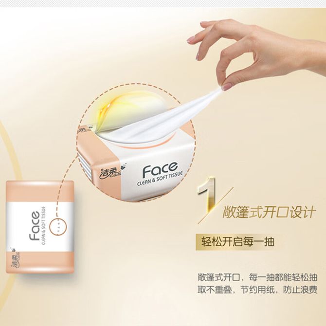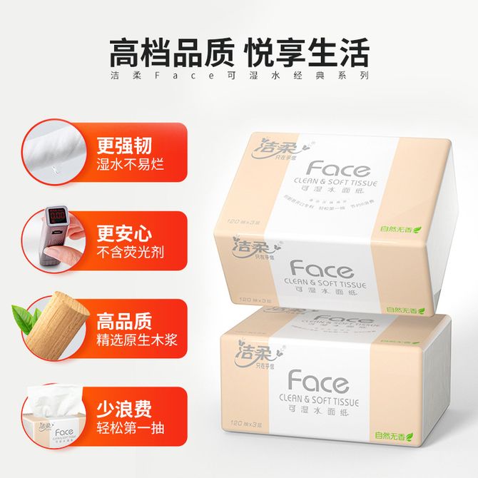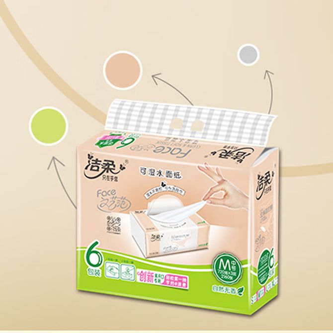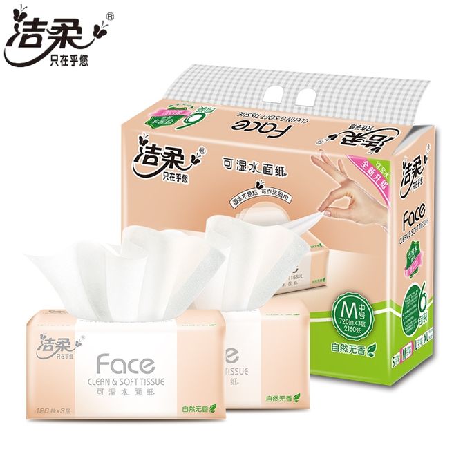 洁柔粉Face抽纸3层120抽6包M码可湿水面巾纸柔韧细滑纸巾