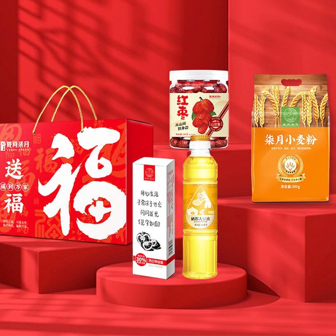 陇间柒月送福·福到万家A款硒都产地米面粮油礼包精致包装佳节送佳品