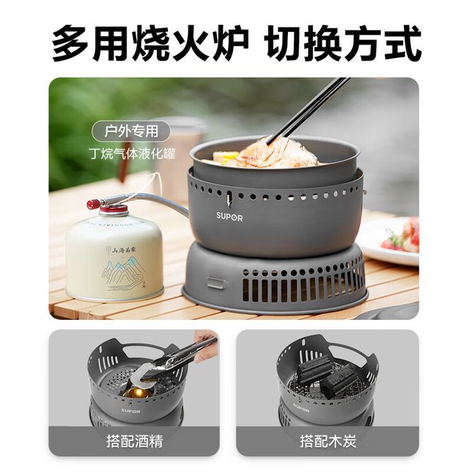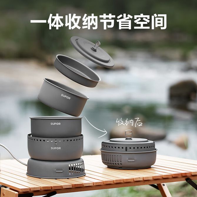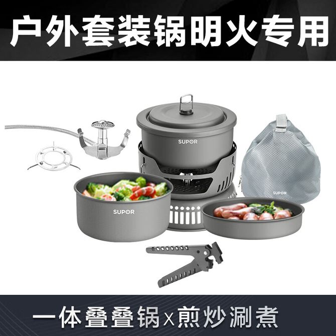 苏泊尔(SUPOR)户外多功能锅具套装奶锅汤锅煎锅野营露营4件套TR2201E