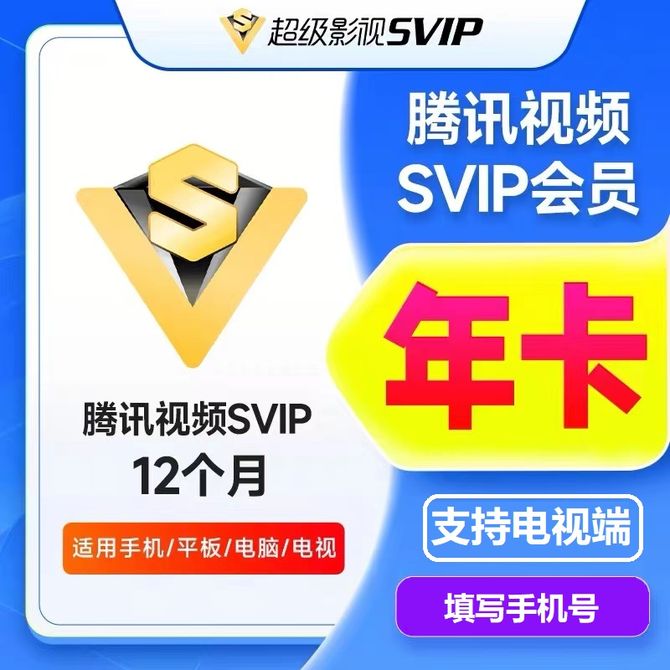 腾讯视频SVIP会员年卡/官方直充到账/最晚次日到账/支持手机、平板、电脑、电视端
