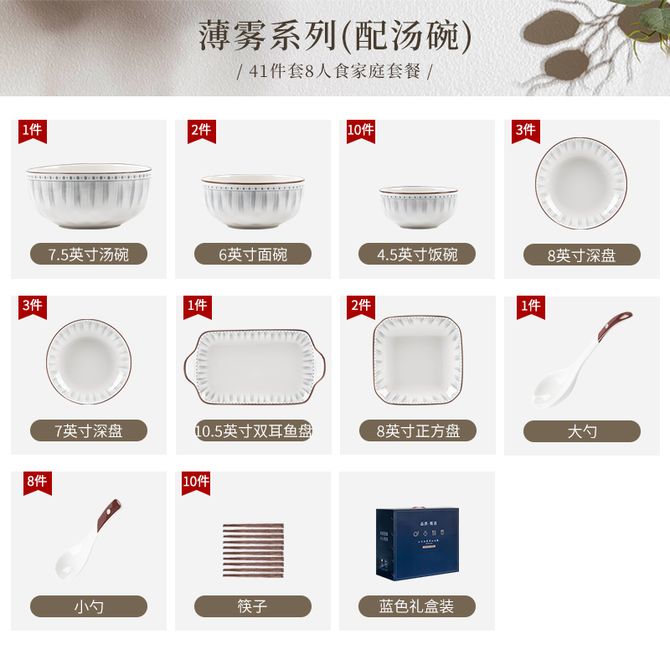 康陌(KANGMO)碗碟套装家用轻奢高档碗盘碗筷碗具饭碗北欧简约乔迁送礼餐具【薄雾系列-8人食41件配汤碗礼盒装】 当吃饭这件普通的小事被注入生活仪式感时,它注定就变得不普通 兑换价格 17800 里程 会员卡别 终身白金卡 白金卡 金卡 银卡 普通卡 儿童卡 服务 由 赛诺厨具 发货并提供售后 颜色: 其他 购买数量: 件 库存件 配送地址: 立即购买 加入购物车 成功添加到购物车 关闭 购物车共有 种商品 总金额为: