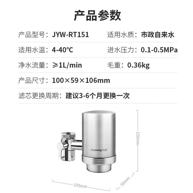 九阳(Joyoung)净水器家用水龙头过滤器自来水净化器滤芯滤水厨房净水机JYW-RT151一机四芯套装