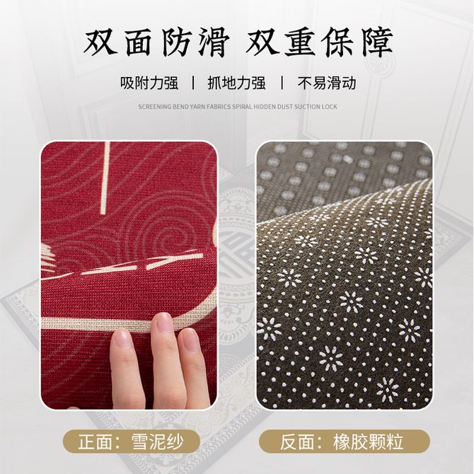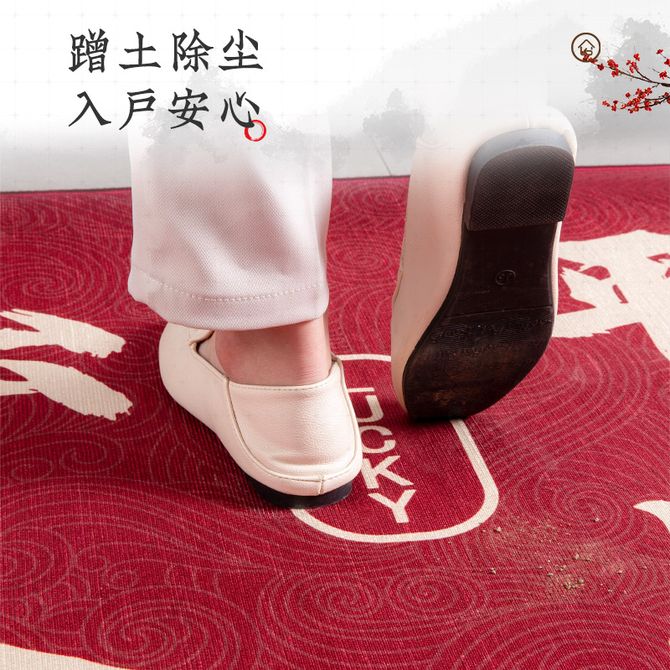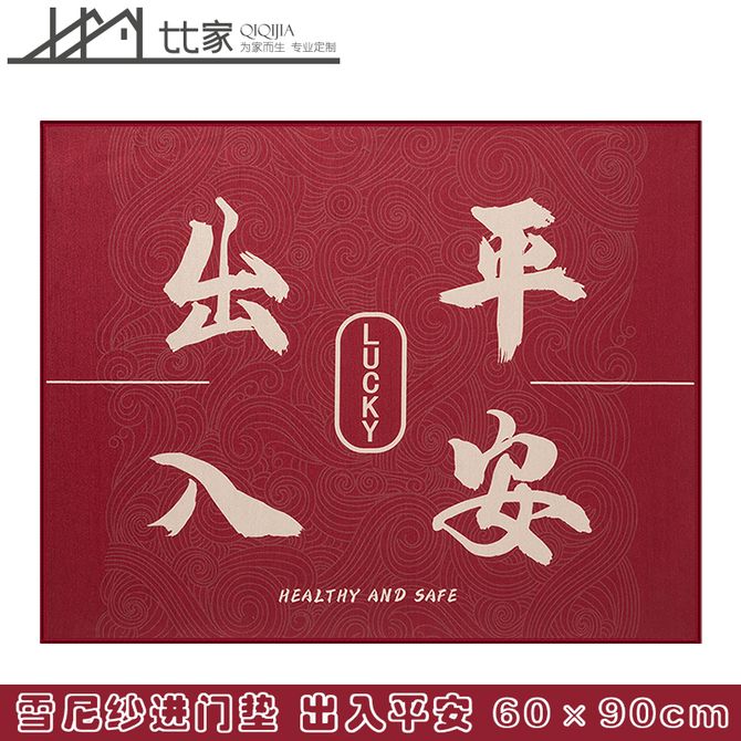 七七家〖新中式入户门地垫〗进门家用门口踩脚垫门厅防滑垫客厅玄关门垫【雪尼纱进门垫-出入平安红色-60x90cm】