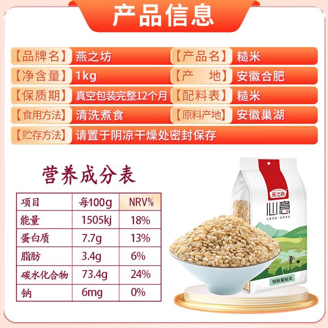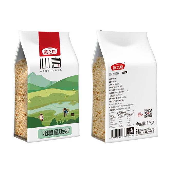 燕之坊糙米1kg*2袋(糙米饭健身玄米粗粮糙米五谷杂粮)