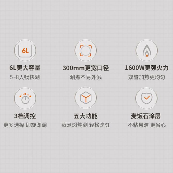 组合销售 产品介绍 产品规格 售后服务 产品咨询 发现好货 美的/Midea 空气炸锅 家用5升可视炸锅金属内腔体微蒸汽多功能智能双旋控温电炸锅 KZE5089 10900 里程 小熊/Bear 空气炸锅 4D漩烤不用翻面 全自动 5L实用大容量 可视 蒸汽嫩炸 控油脱脂 炸烤箱一体机 9100 里程 奥克斯 电火锅 电炒锅 电煮锅 火锅锅 电锅一体锅 家用多功能料理烤肉电热锅 多用途锅大容量 无笼款 5L 4800 里程 苏泊尔(SUPOR)多功能锅料理锅电火锅多用途电煮锅不粘电热锅家用电炒锅方形烤盘煎烤锅JD3424D08-150 YL 13000 里程 苏泊尔(SUPOR)多用途锅电火锅QC系列家用5.5L电蒸锅煎烤机多功能网红锅JD3424D808 13400 里程