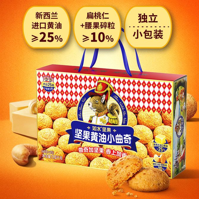 如水黄油坚果曲奇饼干1000g/盒25袋高档孕妇儿童零食伴手礼品礼盒