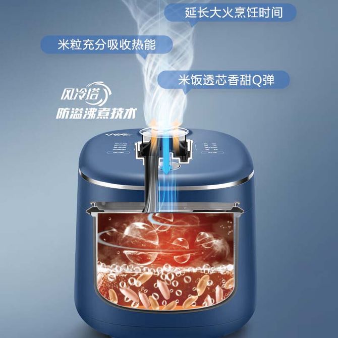 风冷塔防溢沸煮技术,好粥好饭够燃够快,2.0L容量小巧好收纳,多功能小身材大厨艺