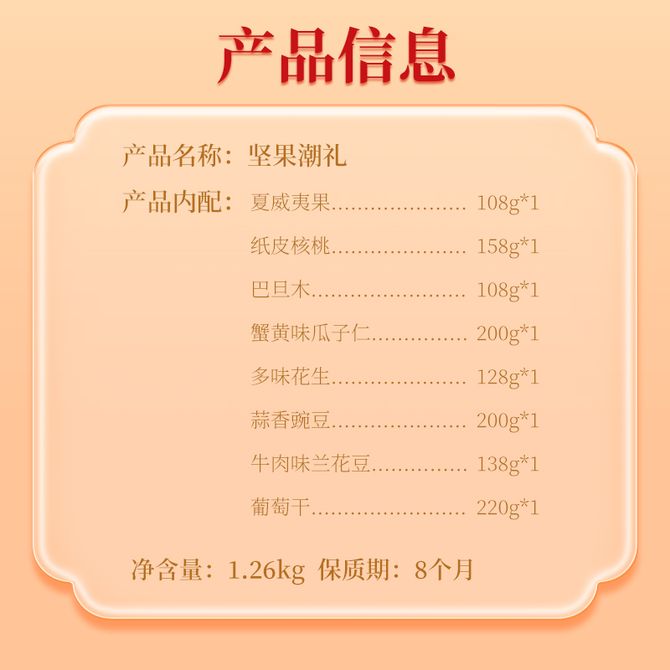 鲜记/xianjee 坚果潮礼 礼盒1260g 休闲坚果零食果干 过年年货送礼大礼包 鲜记 坚果潮礼 礼盒1260g 兑换价格 3100 里程 会员卡别 终身白金卡 白金卡 金卡 银卡 普通卡 儿童卡 服务 由 民敬食品专营店 发货并提供售后 规格: 礼盒 购买数量: 件 库存件 配送地址: 立即购买 加入购物车 成功添加到购物车 关闭 购物车共有 种商品 总金额为: 组合销售 产品介绍 产品规格 售后服务 产品咨询 发现好货 西域美农 新疆薄皮核桃500g/袋 新疆特产原味 薄皮核桃 1300 里程 西域美农 烘焙腰果200g 坚果特产 休闲零食 带皮腰果仁 1600 里程 味滋源 紫皮腰果2袋装 每袋100g 1100 里程 沃隆每日坚果(A)175g盒装 1700 里程 百草味 坚果炒货夏威夷果100g*1袋 1100 里程