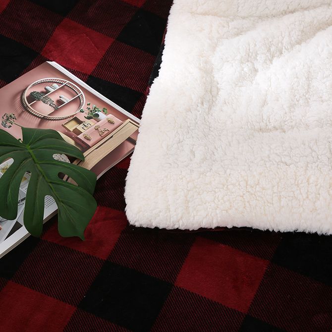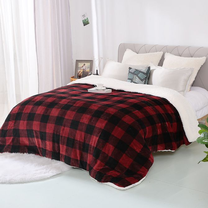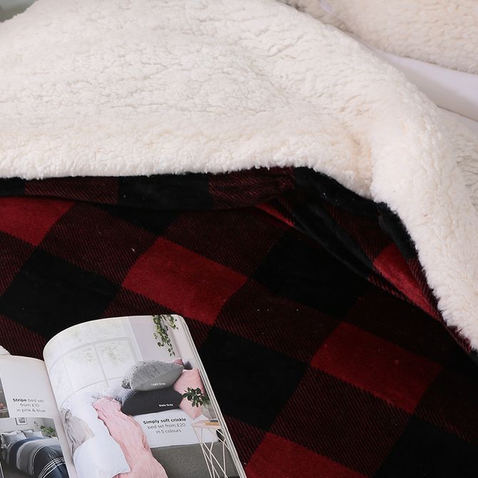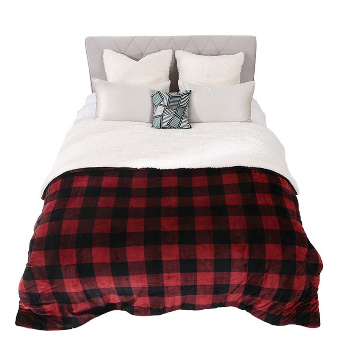 凯诗风尚 被子 法兰绒羊羔绒保暖被芯家用床品 红黑格