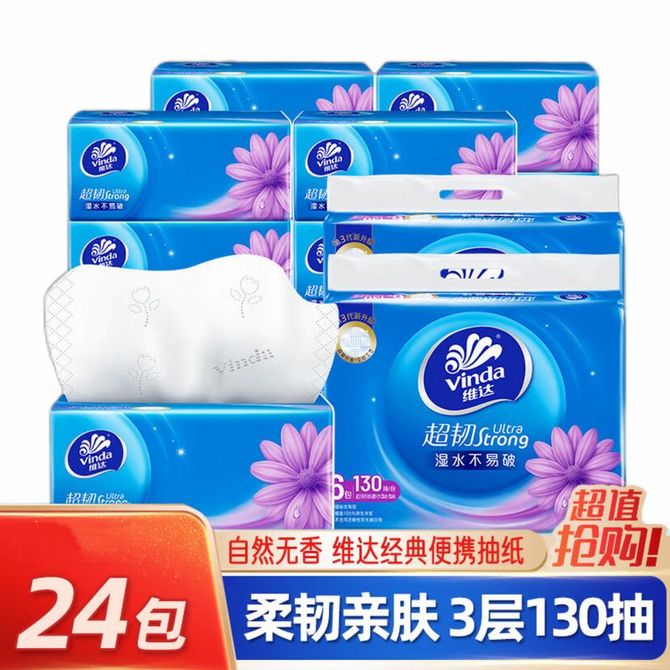 维达 抽纸超韧3层130抽压花卫生纸巾家庭装面巾餐巾纸婴儿卫生纸 下单规格:1提=6包,4提=24包 兑换价格 1100-3200 里程 会员卡别 终身白金卡 白金卡 金卡 银卡 普通卡 儿童卡 服务 由 乘风个护 发货并提供售后 包装数量: 1提 4提 购买数量: 件 库存件 配送地址: 立即购买 加入购物车 成功添加到购物车 关闭 购物车共有 种商品 总金额为: 组合销售 产品介绍 产品规格 售后服务 产品咨询 发现好货 维达卷纸 卫生纸实惠装厕纸家用厕所纸巾手纸整箱批有芯大卷家庭装 1200-2300 里程 维达 Vinda 卷纸 140g/卷*10卷 蓝色经典3层卫生纸 1300 里程 心相印抽纸 茶语丝享系列 量贩家庭装 3层*100抽*4包(茶香 压花) 1100 里程 心相印 经典系列 二层面巾纸 180抽*6包*1提 1100 里程 维达Vinda 超韧系列抽纸(3层*130抽*6包) 原生木浆卫生餐巾纸婴儿面巾纸 6包优惠装 1100 里程