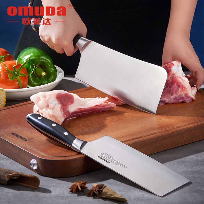 欧美达(OMUDA) 菜刀切菜刀斩骨刀家用厨房刀具不锈钢厨师专用切肉切片组合 GJ02-2