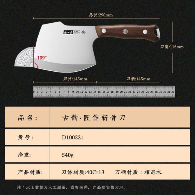 【该款为单把斩骨斧,详情共用】适用鸡鸭骨,猪蹄,筒骨等大骨硬骨处理;