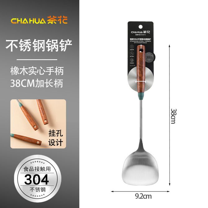 茶花(CHAHUA) 304不锈钢木柄锅铲 橡木柄厨房炒菜铲子【304不锈钢-木柄锅铲1个】