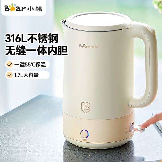 小熊/Bear 烧水壶1.7L 电热水壶 家用316L不锈钢无缝内胆一键保温开水壶 加大容量快速烧水双层防烫电水壶 ZDH-P17H6 316L不锈钢,55°C保温,1.7升容量,1800W功率,无缝内胆,灵敏控温器 兑换价格 4800 里程 会员卡别 终身白金卡 白金卡 金卡 银卡 普通卡 儿童卡 服务 由 广西桂福礼供应链管理有限公司 发货并提供售后 颜色: 其他 购买数量: 件 库存件 配送地址: 立即购买 加入购物车 成功添加到购物车 关闭 购物车共有 种商品 总金额为: