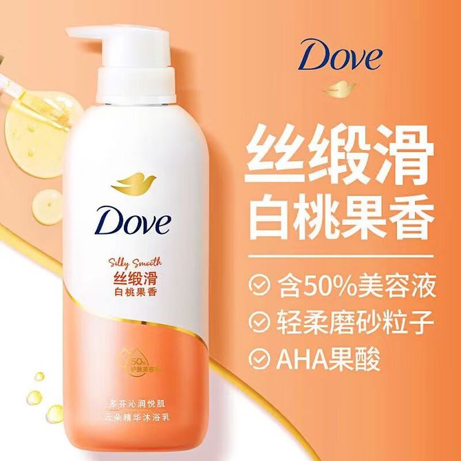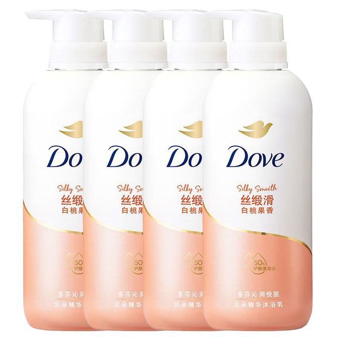 多芬/Dove 白桃果香丝缎滑沐浴乳500g*4瓶 保湿滋润云朵精华沐浴乳透亮保湿沐浴露泡沫绵软舒适温和洁净沐浴液
