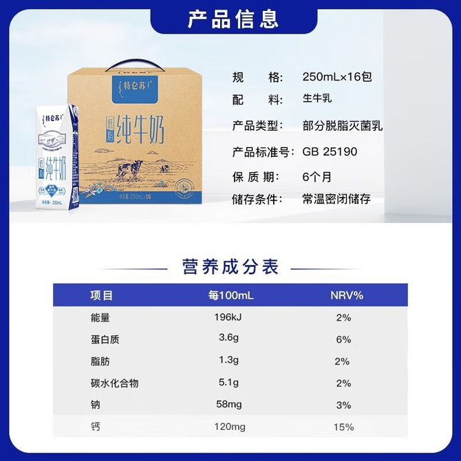 蒙牛 特仑苏低脂纯牛奶250ml×16盒 每100毫升牛奶含优质蛋白质3.6g 原生高钙120mg 兑换价格 3100 里程 会员卡别 终身白金卡 白金卡 金卡 银卡 普通卡 儿童卡 服务 由 全食行 发货并提供售后 规格: 盒装 购买数量: 件 库存件 配送地址: 立即购买 加入购物车 成功添加到购物车 关闭 购物车共有 种商品 总金额为: 组合销售 产品介绍 产品规格 售后服务 产品咨询 发现好货 蒙牛 特仑苏纯牛奶苗条装250ml×12盒 2900 里程 三元 经典小方白全脂纯牛奶250ml*24盒牛奶 整箱 3400 里程 伊利金典纯牛奶250ml*12盒整箱 2200 里程 伊利 金典纯牛奶整箱 250ml*12盒 3.6g乳蛋白 原生高钙 礼盒装 1800 里程 特仑苏 新日期纯牛奶250ml*12盒 3.6g乳蛋白 礼盒装 京东/顺丰发货 2400 里程