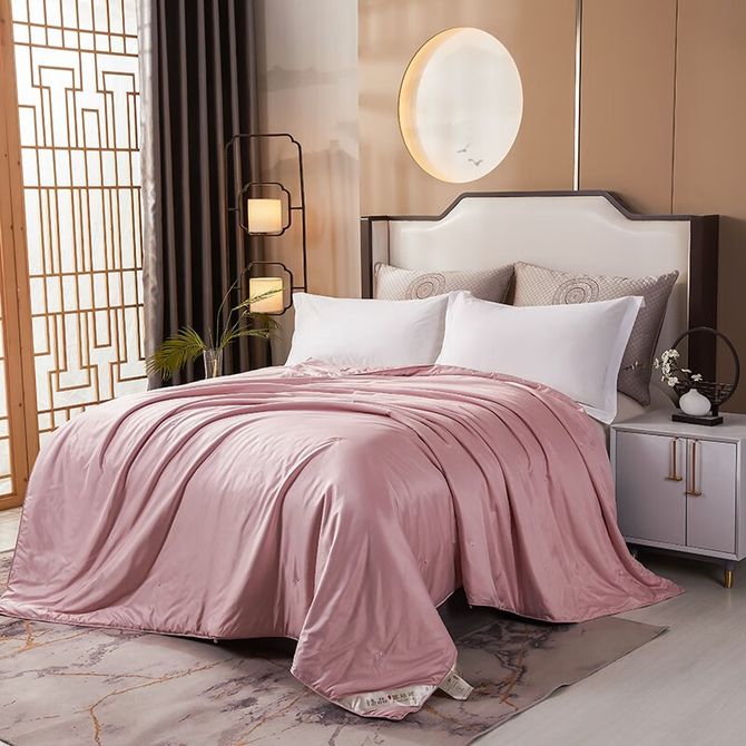 洁帛 被子 蚕丝被 粉色2.2×2.4米子母被5.2斤+7.6斤