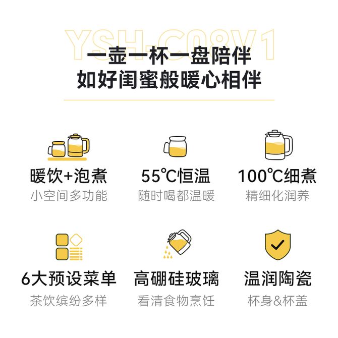 组合销售 产品介绍 产品规格 售后服务 产品咨询 发现好货 九阳/Joyoung 养生壶1.5L茶具电茶壶煮茶壶花茶壶玻璃煮茶器煎药壶中药锅药膳电水壶烧水壶 3900 里程 美的/Midea 养生壶 1.5L家用多功能小型全自动办公室烧水壶加厚玻璃煮茶热水壶 MK-YS15P201 4200 里程 美的/Midea 养生壶 1.5L家用养生壶全自动玻璃烧水壶24h预约烧水壶12小时防干烧保护智能恒温 MK-YS15P202 3500 里程 九阳/Joyoung 养生壶迷你玻璃花茶壶煮茶器 12大功能11档温度 电水壶热水壶烧水壶 1.5L DGD1506BQ 3900 里程 美的/Midea 养生壶 1.5L全自动电热水壶 24h预约12小时智能恒温 14大功能11档控温 花茶壶煮茶器MK-Y12Q 3500 里程