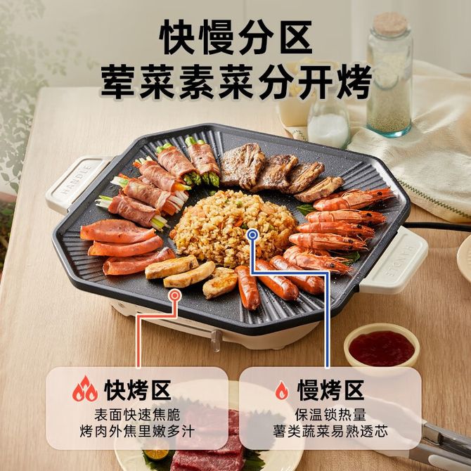 小熊/Bear 八角电烤盘家用无烟电烤炉多功能烤涮电火锅烤肉锅 八角大烤盘, 分区设计 1200W匀火烤 精雕黑砂纹 兑换价格 7000 里程 会员卡别 终身白金卡 白金卡 金卡 银卡 普通卡 儿童卡 服务 由 广西自贸区京通桂达科技发展有限公司 发货并提供售后 颜色: 其他 购买数量: 件 库存件 配送地址: 立即购买 加入购物车 成功添加到购物车 关闭 购物车共有 种商品 总金额为: 组合销售 产品介绍 产品规格 售后服务 产品咨询 发现好货 苏泊尔(SUPOR)电饼铛家用 双面加热煎饼铛煎烤机三明治机烙饼锅早餐机25mm加深烤盘火力可调JD31A847A 6500 里程 苏泊尔(SUPOR) 电饼铛 自动煎烤机 电火锅多功能 加大加深60mm双加热烙饼 锅面煎饼电饼档 两档火力 JT30A818 5700 里程 苏泊尔(SUPOR)电饼铛家用双面加热电饼档煎烤机烙饼机双面悬浮加热早餐机三明治机JJ30A648-Q 5700 里程 美的(Midea)电饼铛家用智能双面加热煎烤机烙饼机蛋饼机薄饼机煎饼烙饼锅JHN30F 4800 里程 奥克斯 电饼铛家庭用新款双面加热加大尺寸加深烤盘烙饼专用锅自动控温断电煎饼锅早餐机 5200 里程