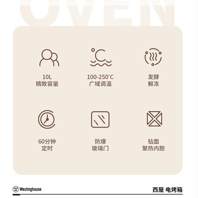 西屋/Westinghouse 电烤箱家用迷你多功能小型烤炉烤箱 烘焙烤蛋挞蛋糕10升容量 WTO10X 10L精致容量,100-250°C广域调温,发酵解冻,60分钟定时,防爆玻璃门,钻面聚热内胆 兑换价格 6500 里程 会员卡别 终身白金卡 白金卡 金卡 银卡 普通卡 儿童卡 服务 由 广西桂福礼供应链管理有限公司 发货并提供售后 颜色: 白色 购买数量: 件 库存件 配送地址: 立即购买 加入购物车 成功添加到购物车 关闭 购物车共有 种商品 总金额为: