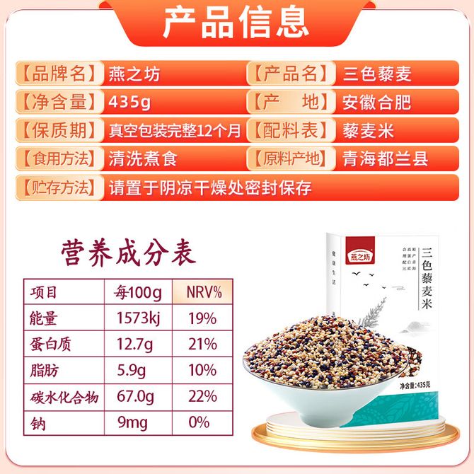 燕之坊 三色藜麦435g 燕之坊三色藜麦435g(稀有五谷杂粮大米伴侣粥米搭档真空装) 兑换价格 1100 里程 会员卡别 终身白金卡 白金卡 金卡 银卡 普通卡 儿童卡 服务 由 天天乐选食品商城 发货并提供售后 规格: 袋装 购买数量: 件 库存件 配送地址: 立即购买 加入购物车 成功添加到购物车 关闭 购物车共有 种商品 总金额为: 组合销售 产品介绍 产品规格 售后服务 产品咨询 发现好货 金熊 泰国茉莉 香米 1kg 泰国原料进口 1300 里程 十月稻田当季新米辽河长粒香大米 5kg 东北大米 香米 粳米 十斤 2100 里程 源头说 五常有机稻花香新米 东北大米 2.5kg(双重防伪认证) 4200 里程 十月稻田 长粒香大米2.5kg 东北大米5斤 东北香米 1300 里程 稻可道雪地黑土东北珍珠大米5kg 1600 里程