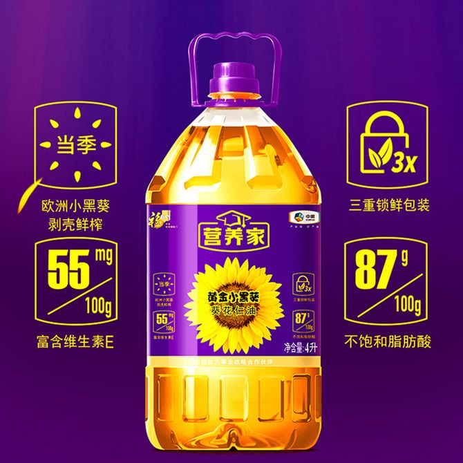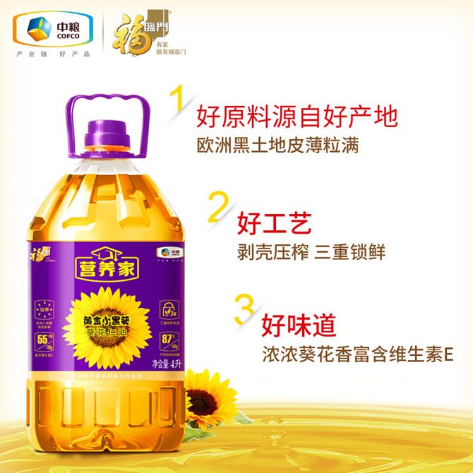 福临门 食用油 营养家黄金小黑葵葵花仁油 物理压榨 4L