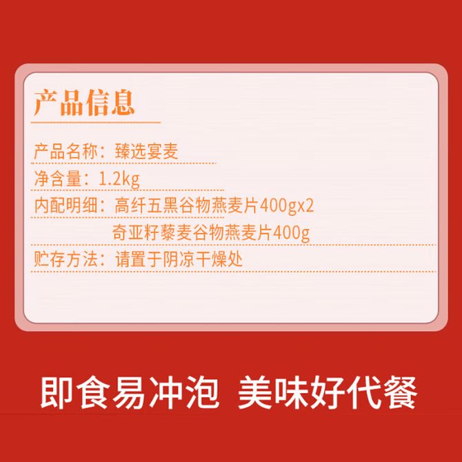 组合销售 产品介绍 产品规格 售后服务 产品咨询 发现好货 西麦 即食燕麦片1000g桶装营养早餐谷物代餐无额外添加蔗糖 1400 里程 燕之坊 黑八宝450g 黑芝麻糊桑葚奇亚籽芝麻核桃黑豆早餐代餐粉 即食速溶 3000 里程 阴山优麦即食纯燕麦片 全胚芽裸燕麦 营养早餐谷物 膳食纤维 1000g 罐装 2400 里程 西麦 有机即食高蛋白营养早餐冲饮谷物代餐纯燕麦片880g 1700 里程 燕之坊 红豆薏米枸杞粉 红小豆赤小豆薏米薏仁代餐粉 500g 低卡饱腹 3500 里程