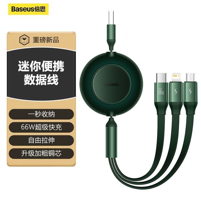 倍思/Baseus 明镜系列2随意拉伸一拖三66W快充数据线 三合一充电线1.1米USB to M+L+C 绿色CAMJ010106 一秒收纳 迷你便携 66W三合一(苹果15系列不可用) 兑换价格 2600 里程 会员卡别 终身白金卡 白金卡 金卡 银卡 普通卡 儿童卡 服务 由 贝洛美智能科技精品馆 发货并提供售后 颜色: 墨绿色 购买数量: 件 库存件 配送地址: 立即购买 加入购物车 成功添加到购物车 关闭 购物车共有 种商品 总金额为:
