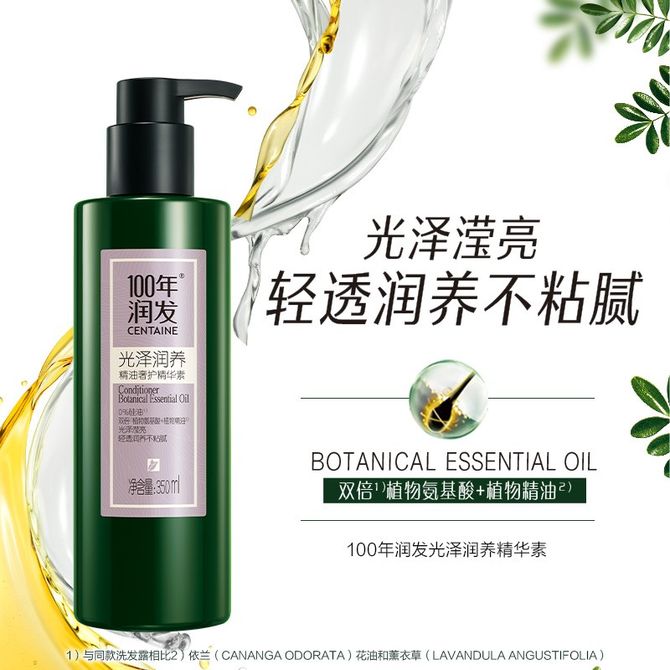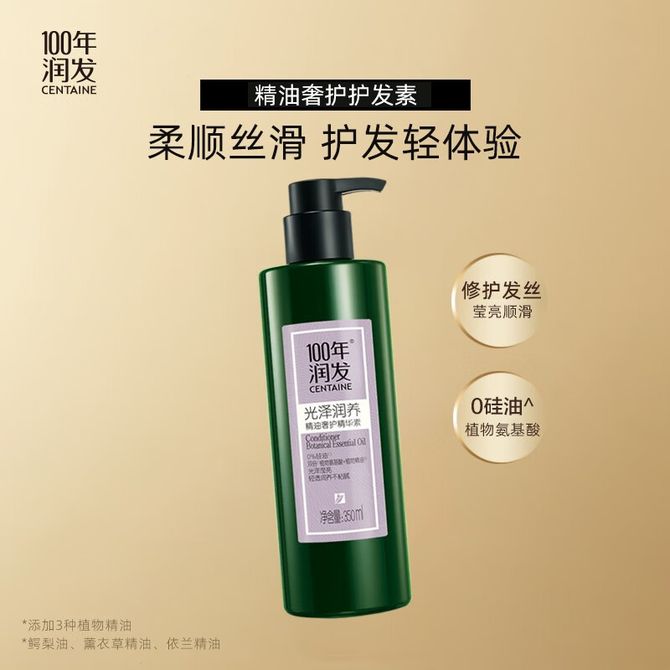 100年润发 光泽润养精油奢护洗护套装 洗发露350ml+精华素350ml 精油奢护洗发水露去头屑改善毛躁护发素 洗护组合套装2件套