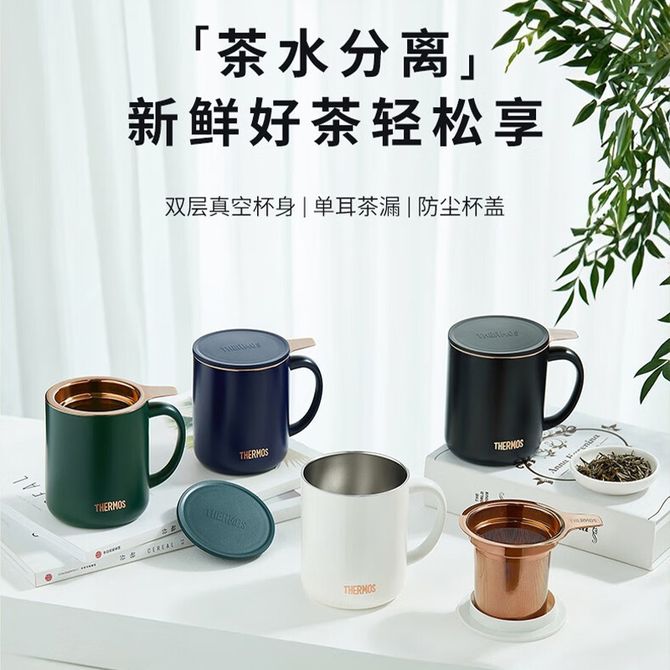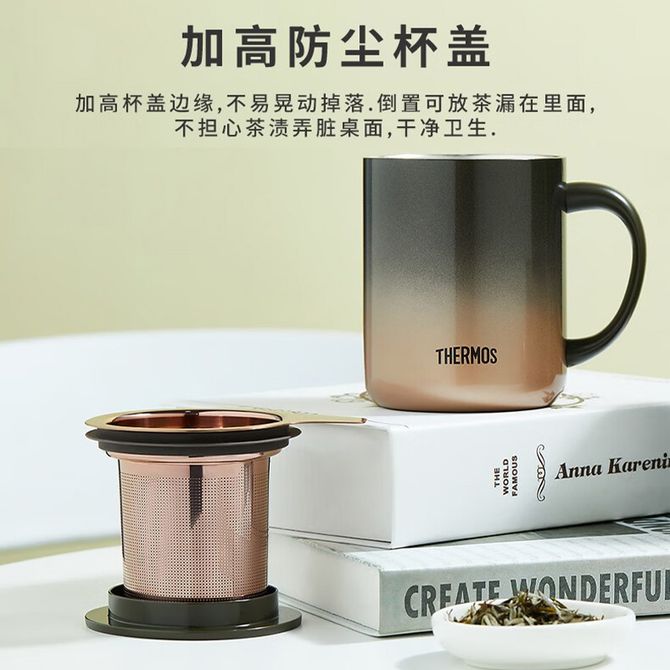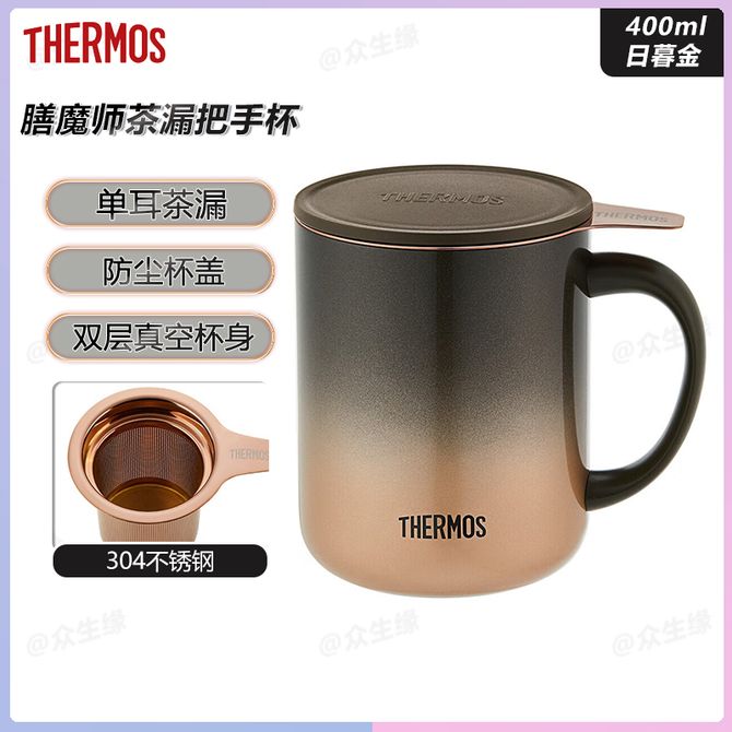 膳魔师(THERMOS) 茶漏把手杯400ml日暮金不锈钢保温马克杯办公把手杯泡茶简约带茶漏咖啡杯TEMC-400