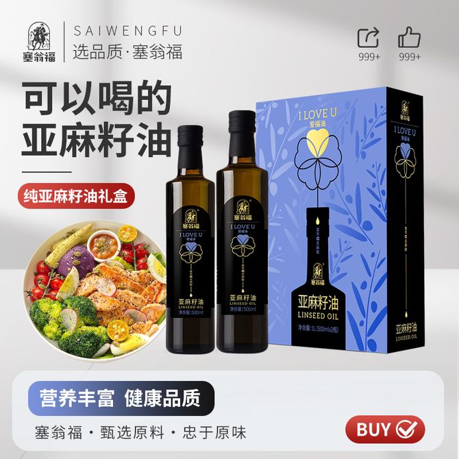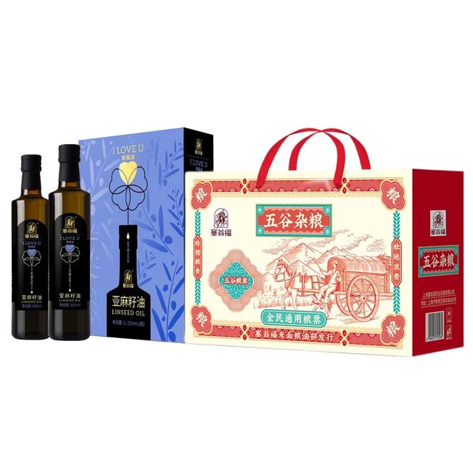 塞翁福 纯亚麻籽油礼盒500ml*2瓶+五谷杂粮礼盒4000g 家用养生减脂杂粮食用油组合