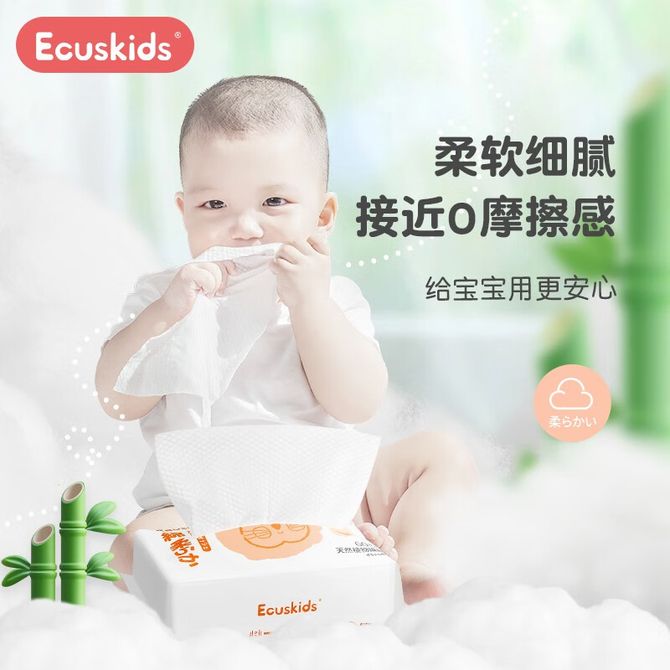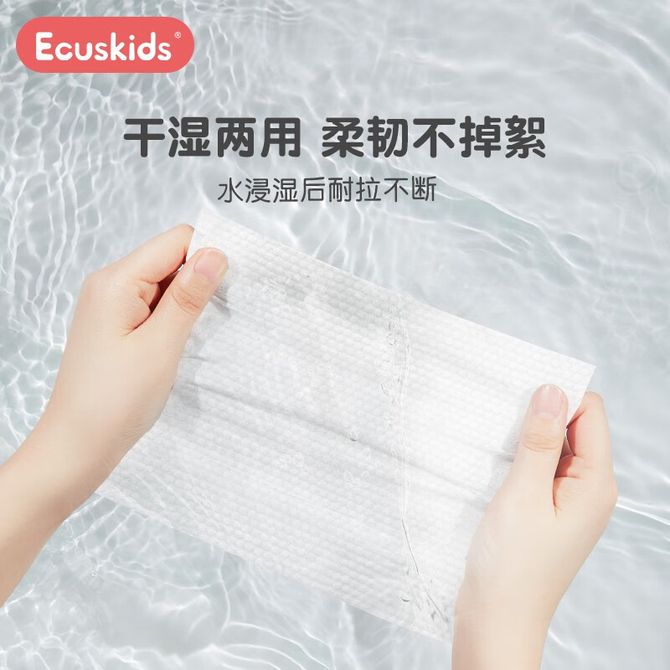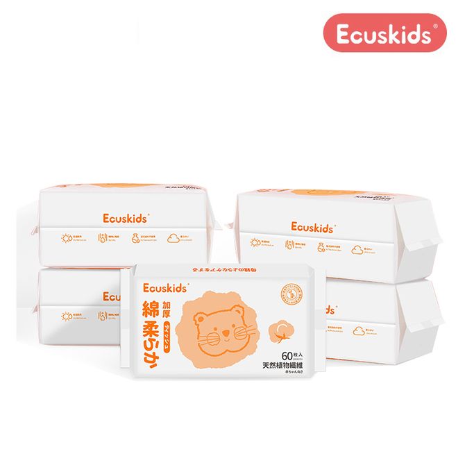 Ecuskids 爱卡思绵柔巾婴儿儿童一次性干湿两用洁面清洁成人洗脸巾纸巾加大加厚绵柔巾60抽/包*5包