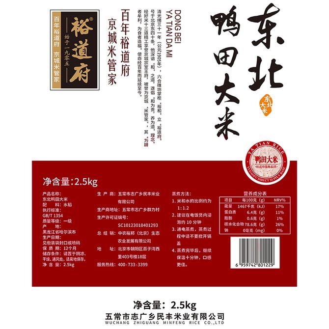 裕道府 东北鸭田大米2.5kg 6959742801670
