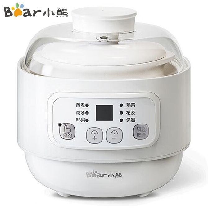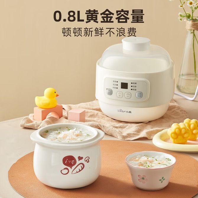 小熊/Bear 电炖盅0.8L电炖锅小容量隔水炖陶瓷燕窝炖盅煮粥锅迷你婴儿辅食锅宝宝煮粥锅bb煲 隔水柔炖,释放食材营养,0.8升容量,小份煮顿顿鲜 兑换价格 4100 里程 会员卡别 终身白金卡 白金卡 金卡 银卡 普通卡 儿童卡 服务 由 广西自贸区京通桂达科技发展有限公司 发货并提供售后 颜色: 白色 购买数量: 件 库存件 配送地址: 立即购买 加入购物车 成功添加到购物车 关闭 购物车共有 种商品 总金额为: 组合销售 产品介绍 产品规格 售后服务 产品咨询 发现好货 小熊/Bear 电炖锅1-2人小炖锅煮粥锅智能预约定时煲汤锅炖汤锅燕窝炖盅 4400 里程 苏泊尔(SUPOR) 电火锅家用不粘煎涮炖煮多功能4L大容量一体式大火力电煮锅不粘煎涮炖煮多功能料理锅 H40YK757 5700 里程 西屋/Westinghouse 多功能电煮锅电炖锅1.6L一锅多能WFB16A 11600 里程 苏泊尔(SUPOR) 电火锅 宿舍小电锅学生寝室一体泡面小火锅 多功能锅涮肉涮菜 1.7L 【 单锅】H17YK489 3000 里程 小熊(Bear)电炖锅电炖盅煮粥神器煲汤锅炖汤锅婴儿煮粥锅熬粥燕窝炖盅DDG-E15K2 4800 里程