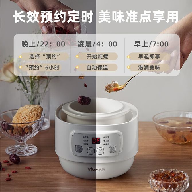 组合销售 产品介绍 产品规格 售后服务 产品咨询 发现好货 小熊/Bear 电炖锅1-2人小炖锅煮粥锅智能预约定时煲汤锅炖汤锅燕窝炖盅 4400 里程 苏泊尔(SUPOR) 电火锅家用不粘煎涮炖煮多功能4L大容量一体式大火力电煮锅不粘煎涮炖煮多功能料理锅 H40YK757 5700 里程 西屋/Westinghouse 多功能电煮锅电炖锅1.6L一锅多能WFB16A 11600 里程 苏泊尔(SUPOR) 电火锅 宿舍小电锅学生寝室一体泡面小火锅 多功能锅涮肉涮菜 1.7L 【 单锅】H17YK489 3000 里程 小熊(Bear)电炖锅电炖盅煮粥神器煲汤锅炖汤锅婴儿煮粥锅熬粥燕窝炖盅DDG-E15K2 4800 里程