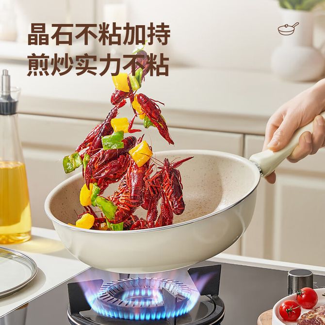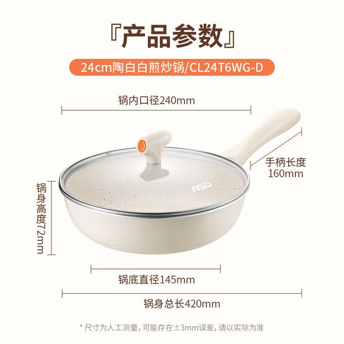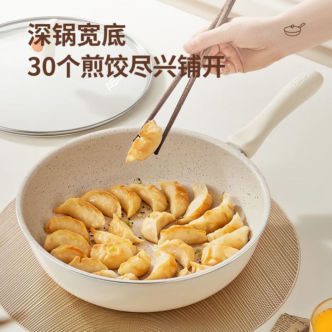 爱仕达/ASD 煎锅24cm平底锅陶瓷不粘麦饭石色多功能炒菜锅 明火电磁炉可用CL24T-6WG-D