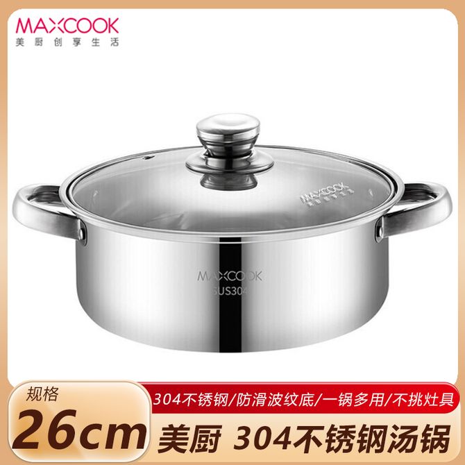 美厨(MAXCOOK) 汤锅火锅 家用26cm汤锅304不锈钢厨房烹饪锅具 燃气灶电磁炉通用MC-T8697 26cm汤锅;304不锈钢,防滑波纹底,一锅多用,不挑灶具 兑换价格 2600 里程 会员卡别 终身白金卡 白金卡 金卡 银卡 普通卡 儿童卡 服务 由 广西桂雅文化传媒有限公司 发货并提供售后 颜色: 其他 购买数量: 件 库存件 配送地址: 立即购买 加入购物车 成功添加到购物车 关闭 购物车共有 种商品 总金额为: