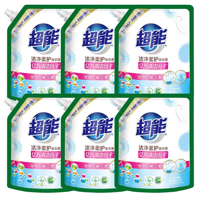 超能 洁净柔护洗衣液(鲜艳亮丽)2kgx6 24斤装 天然椰油 植萃低泡 正品包邮 一般48小时内发出,节假日发货可能会有延迟,部分商品新旧包装更新中随机发,还请见谅! 兑换价格 5200 里程 会员卡别 终身白金卡 白金卡 金卡 银卡 普通卡 儿童卡 服务 由 好时光家居专营店 发货并提供售后 净含量: 其他容量 清洁剂容量: 其他容量 购买数量: 件 库存件 配送地址: 立即购买 加入购物车 成功添加到购物车 关闭 购物车共有 种商品 总金额为: 组合销售 产品介绍 产品规格 售后服务 产品咨询 发现好货 蓝月亮 深层洁净洗衣液4斤 1kgx1瓶+500gx2补充装 薰衣草香 强效去渍 1500 里程 蓝月亮 蓝月亮茉莉清香洁净洗衣液1kg*2 1400 里程 威露士/Walch La有氧洗洗衣液套装 4斤松木清香(瓶1L+袋500ml*2) 除菌除螨 1900 里程 威露士 洗衣液除菌机洗手洗家用除螨去污1L*1瓶 1500 里程 威露士(Walch) 抗菌有氧洗衣液1L松木清香 1100 里程