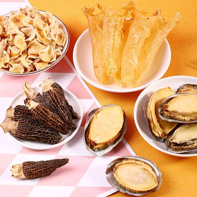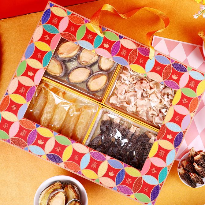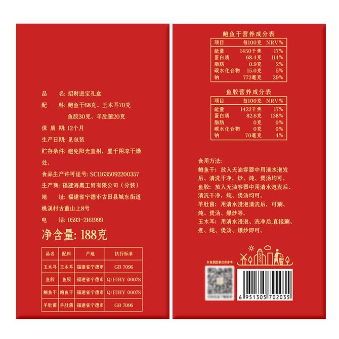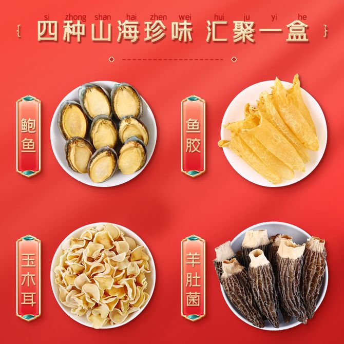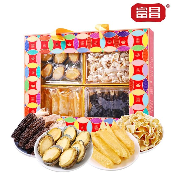 富昌 招财进宝礼盒188g 南北干货 4袋 鲍鱼干 玉木耳 鱼胶 羊肚菌 礼盒组合装